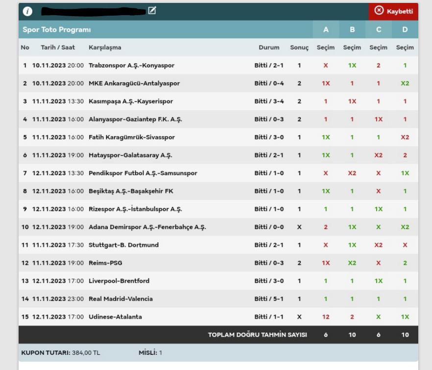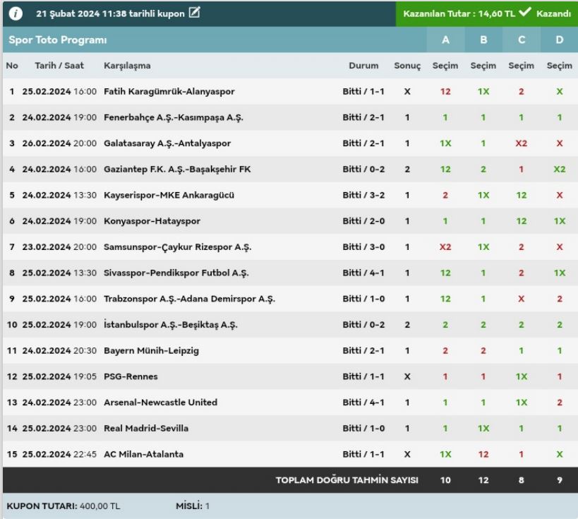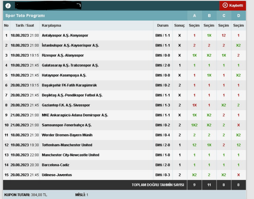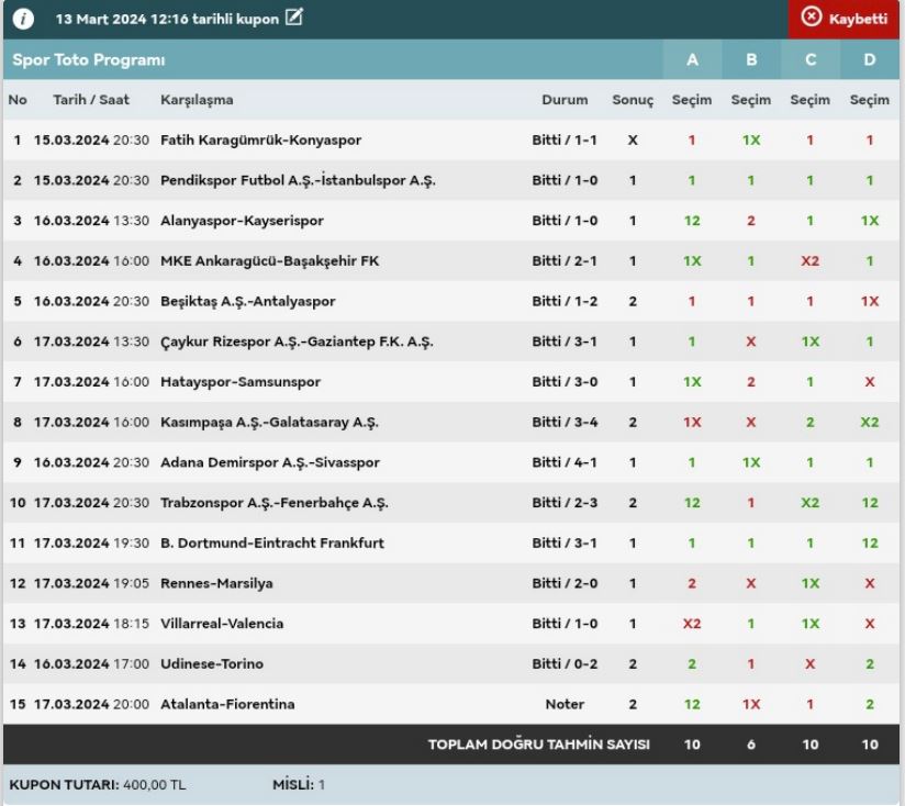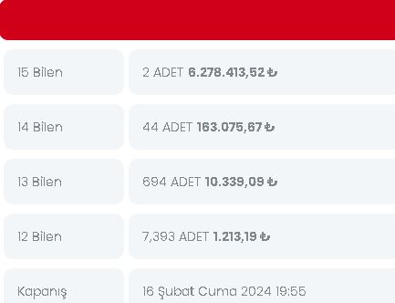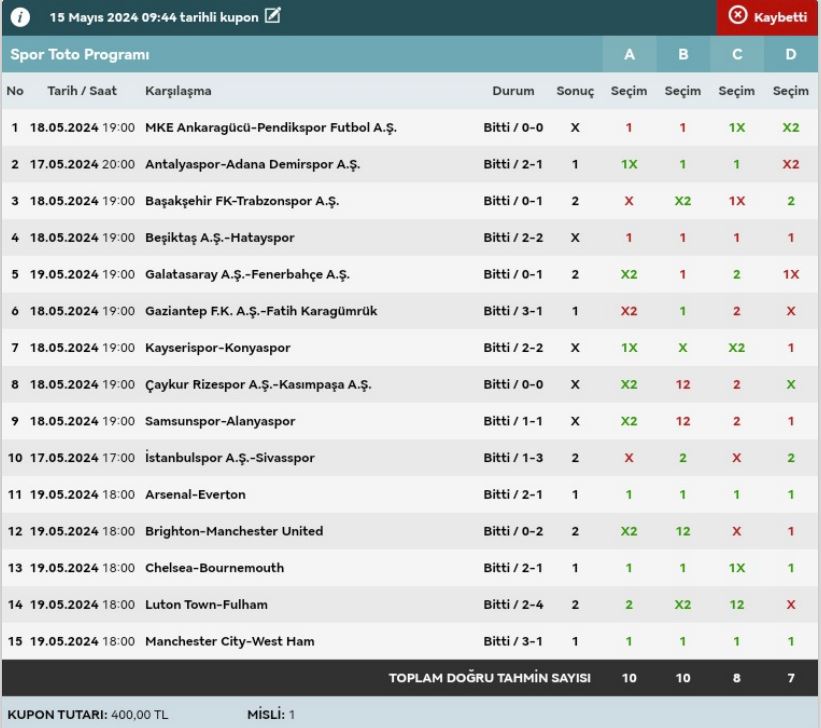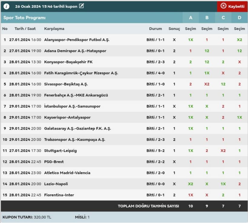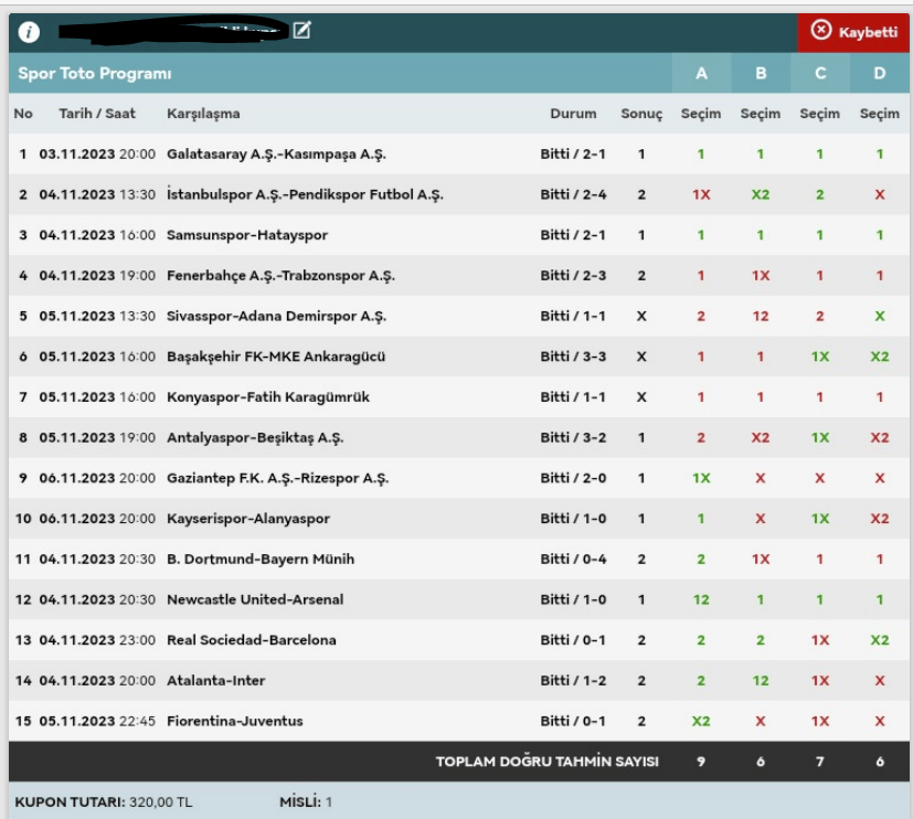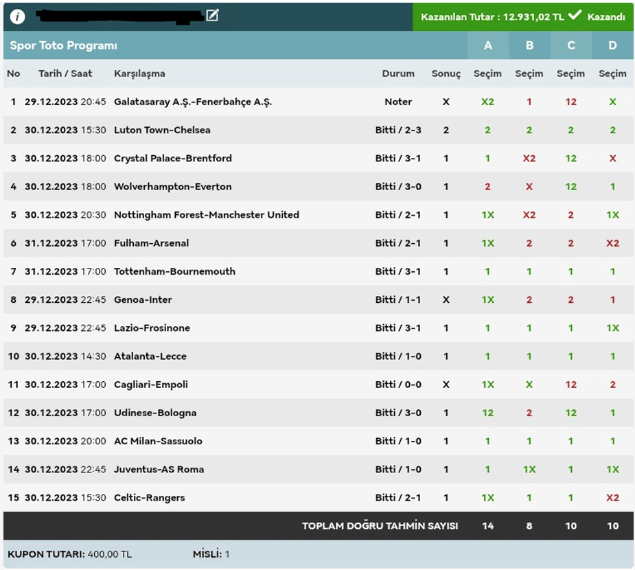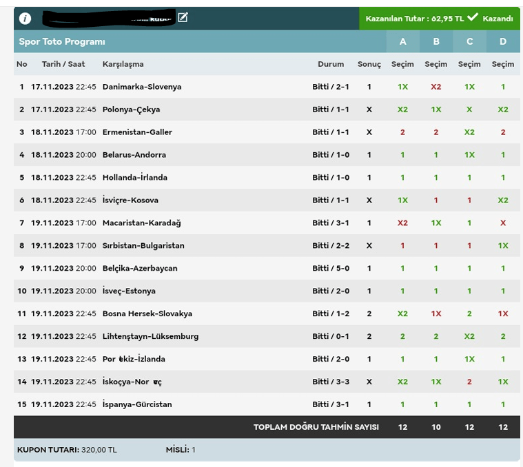 Stake:320 Return: 62 ₺
