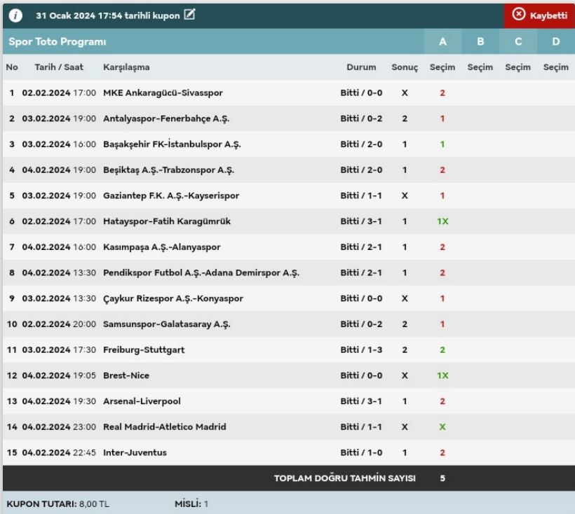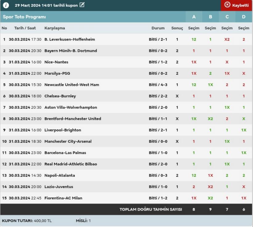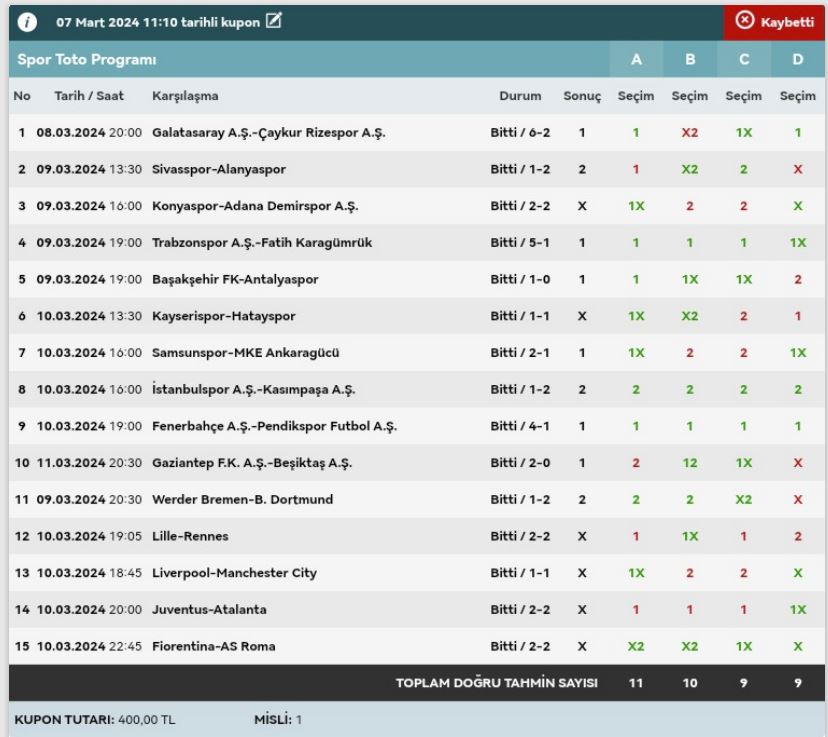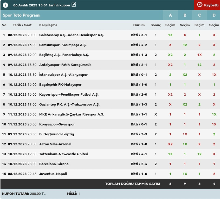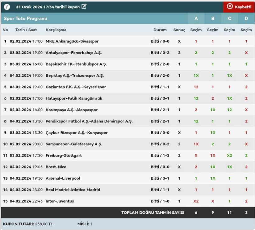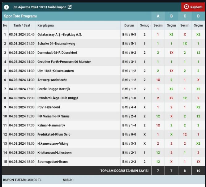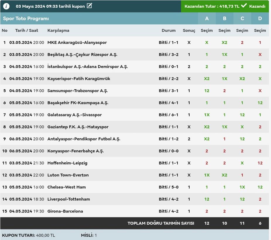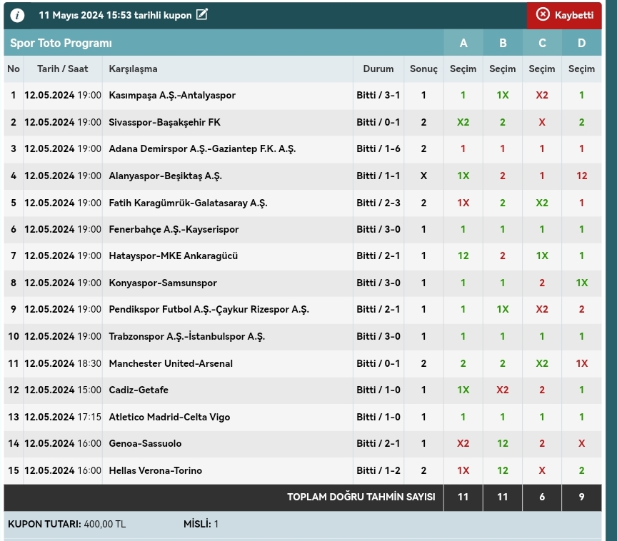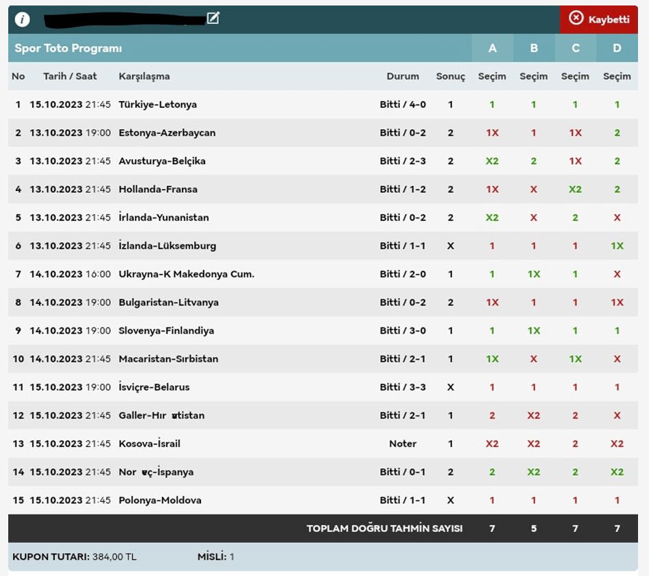 Stake:320 Return: 62 ₺